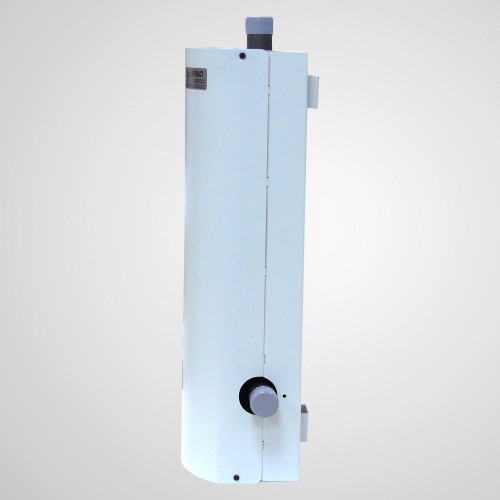Лицевая панель водонагревателя имеет полукруглую форму, на ней расположена плоская чёрная панель управления, на которой размещён цифровой дисплей, удобные функциональные кнопки управления с индикаторами, указатель количества работающих ТЭНов. При помощи кнопок можно задать необходимый уровень мощности прибора, желаемую температуру воздуха в помещении и температуру теплоносителя в котле. Выносной электронный датчик температуры ( поставляется в комплекте ) позволяет точно отслеживать малейшие колебания температуры воздуха в помещении ( эти изменения отражаются на дисплее при выборе соответствующей настройки ).