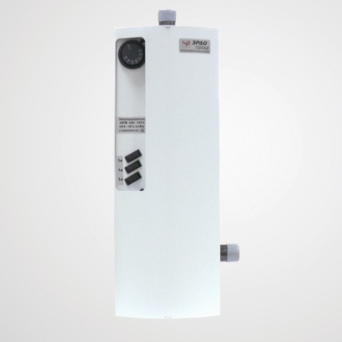 Элeктрoкoтёл имеет встроенный пульт управления, предназначенный для переключения мощности и регулирования температуры нагрева теплоносителя. Регулятором температуры элeктрoкoтла служит капиллярный термостат, термочувствительный элемент которого закреплён в средней части стальной ёмкости (резервуара). Для защиты от перегрева электроводонагреватель оборудован самовозвратным датчиком аварийного отключения (температура срабатывания  90†5 оС).