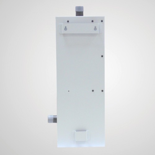 Верхний напорный и нижний обратный патрубки предназначены для присоединения водонагревателя к системе отопления. В электрокотле ЭВПМ-NEXT реализована возможность изменения расположения патрубков подачи и обратки относительно лицевой панели при монтаже изделия. На лицевой стороне водонагревателя расположена ручка регулятора температуры и клавиши переключения мощности. На нижней части корпуса имеется заглушка ступенчатая для ввода в пульт питающего кабеля. Болт для крепления заземляющего провода расположен внутри корпуса на кронштейне крепления колбы котла.